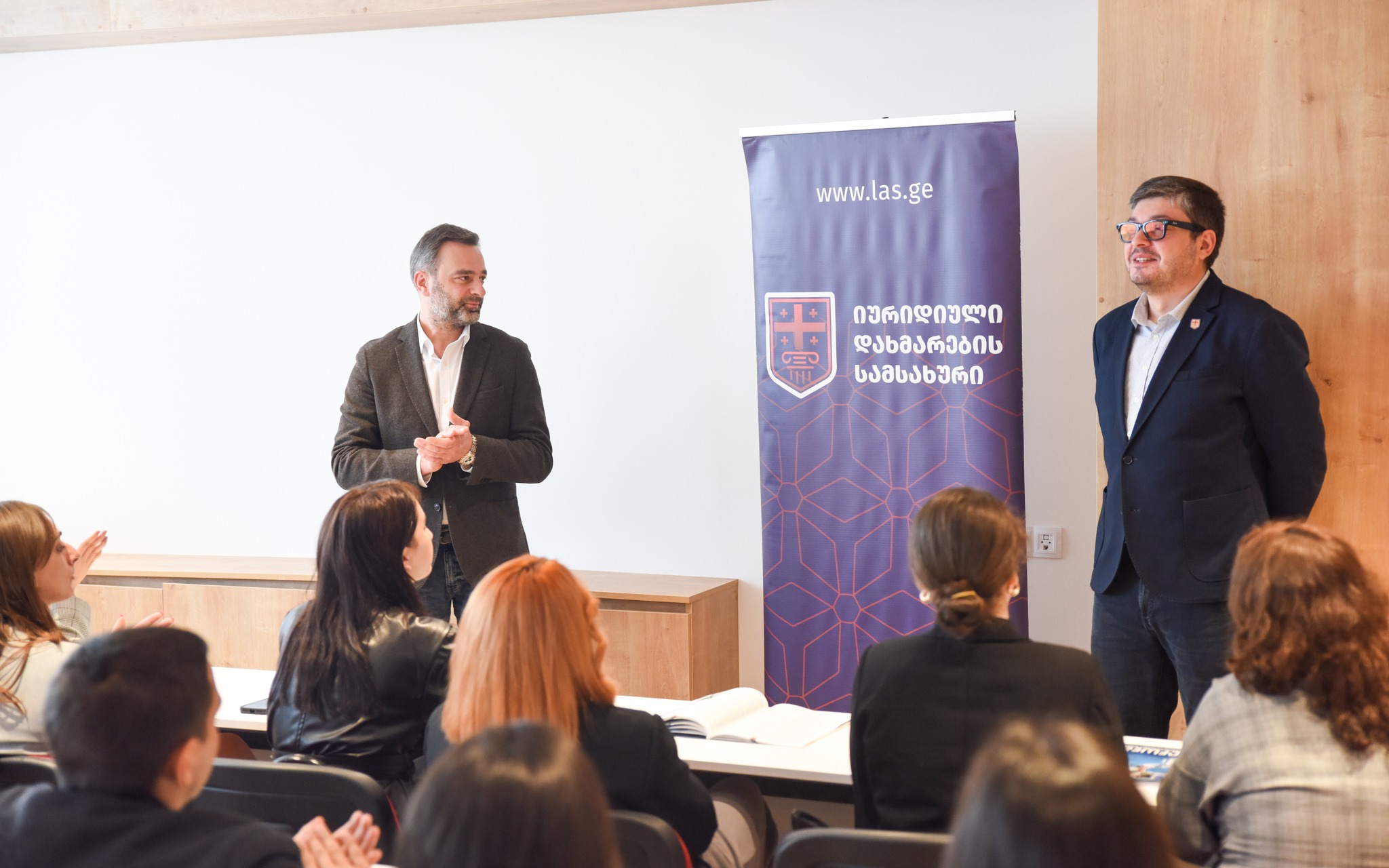 დავით სიმონიამ ახალგაზრდებს გააცნო საქართველოში მოქმედი უფასო სამართლებრივი დაცვის სისტემა და იურიდიული დახმარების სამსახურის სერვისები, ესაუბრა ადვოკატის პროფესიის თავისებურებებზე.