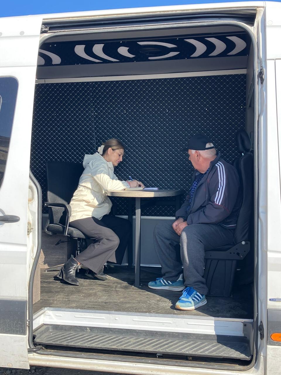 The attorneys gave the villagers one-on-one legal counsel in the mobile consulting centre, a specially equipped minivan.  The mobile consulting centre, as is well known, enables completely confidential sessions.